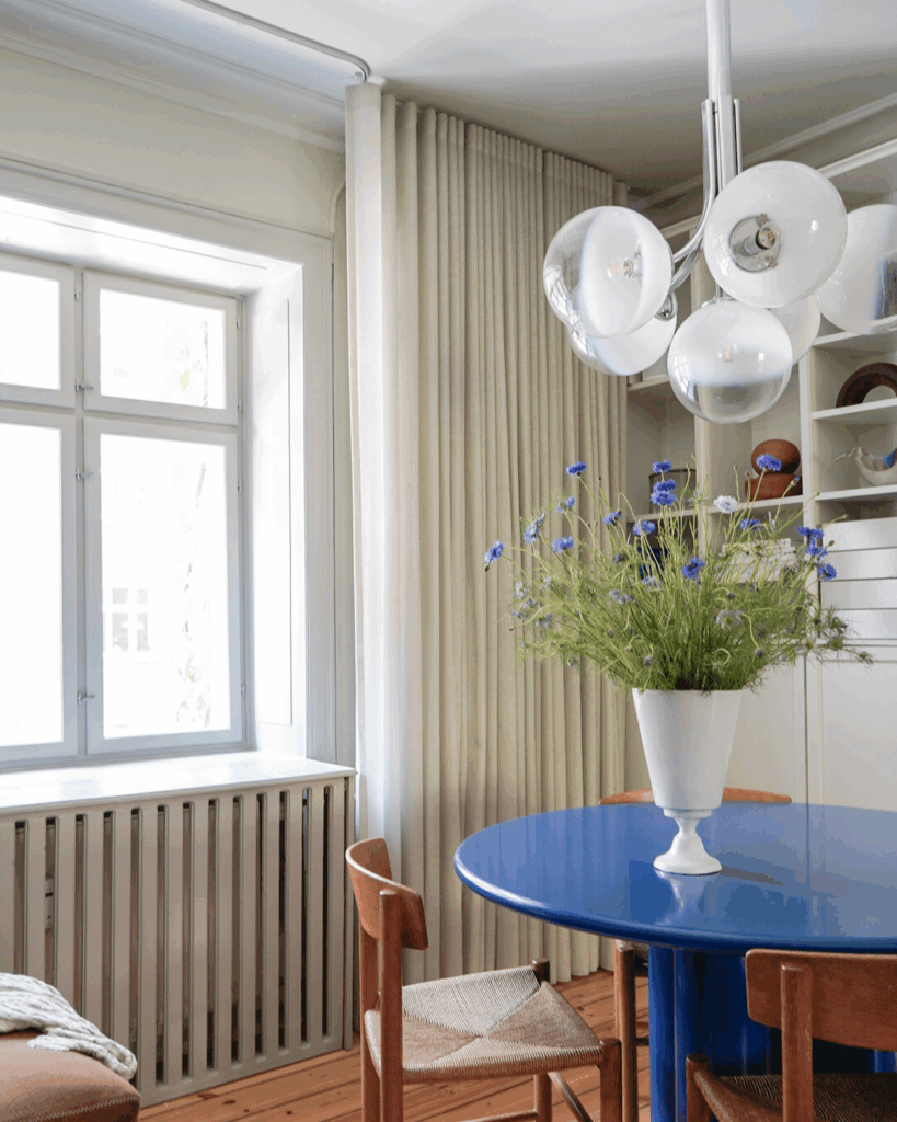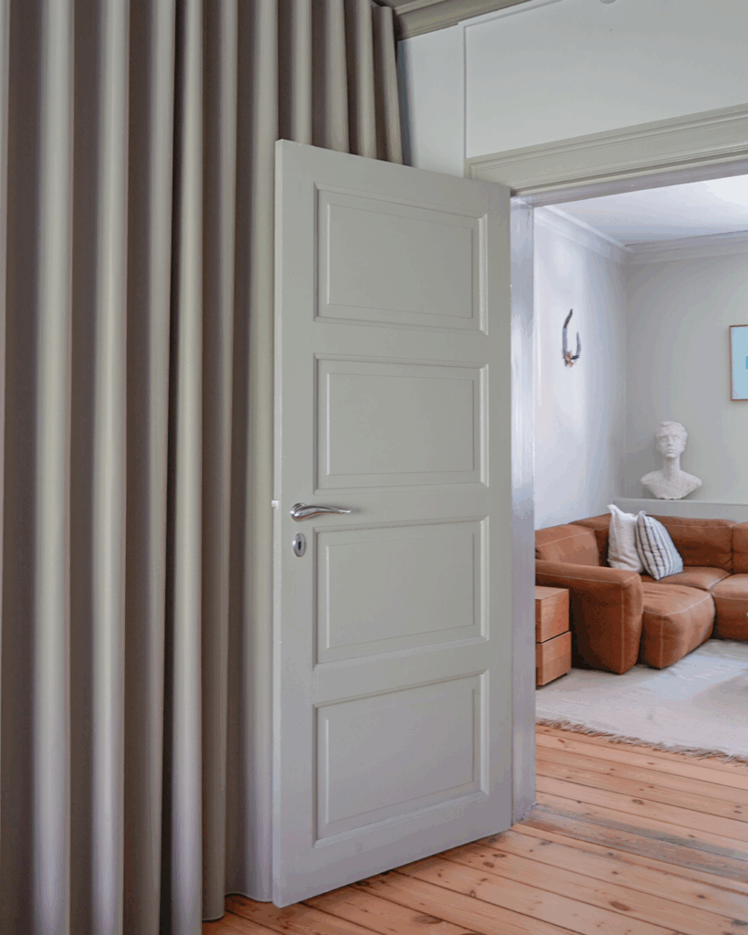 Kombinationen af funktion og æstetik findes som en rød tråd gennem hele hjemmet og viser, hvordan gardiner ikke blot kan være praktiske, men også en afgørende del af indretningens personlighed og atmosfære.